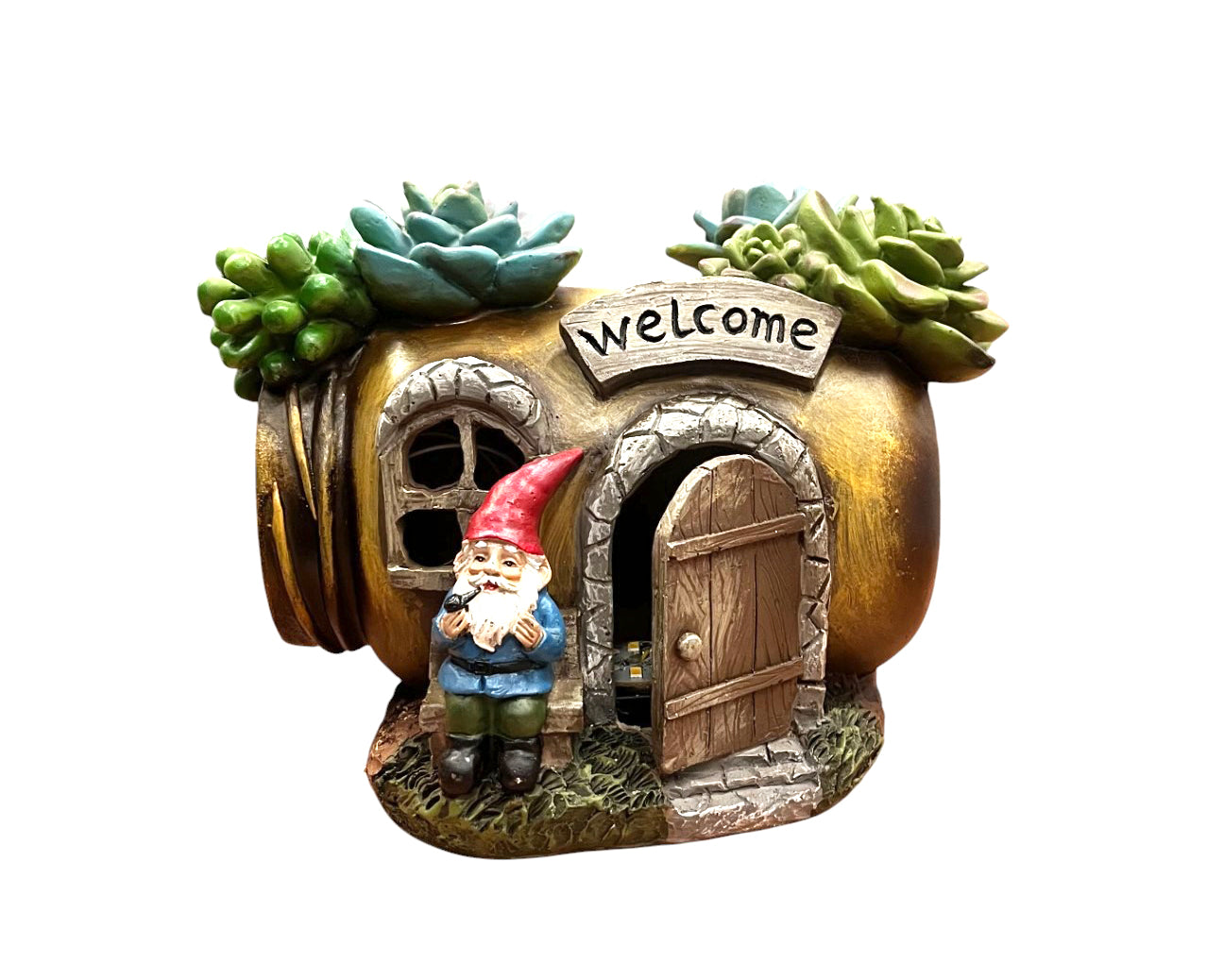 Add a charming glow to your garden with this Solar Garden Gnome Welcome Ornament. Featuring a friendly gnome seated in front of a wine barrel, this LED outdoor decor lights up your space using solar power—no wiring needed. Perfect for creating a warm and inviting atmosphere, it brightens pathways or patios while enhancing your garden’s personality effortlessly. Durable and weather-resistant, it combines whimsical charm with eco-friendly functionality to welcome guests day and night.
